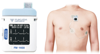 小型の心電計を装着したまま自宅で24時間過ごしていただき、不整脈の有無や頻度を評価します。通常の心電図検査では異常が見つからない、短時間の不整脈を診断するのに有用です。